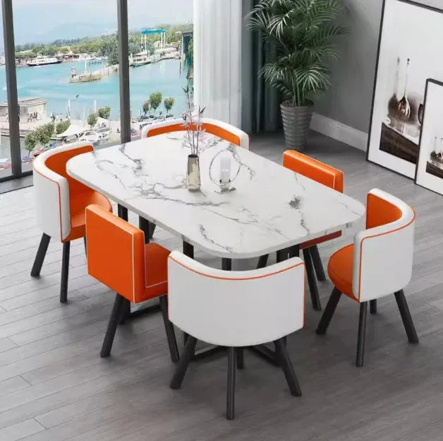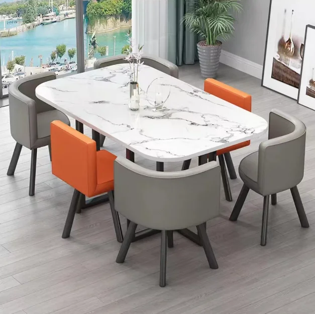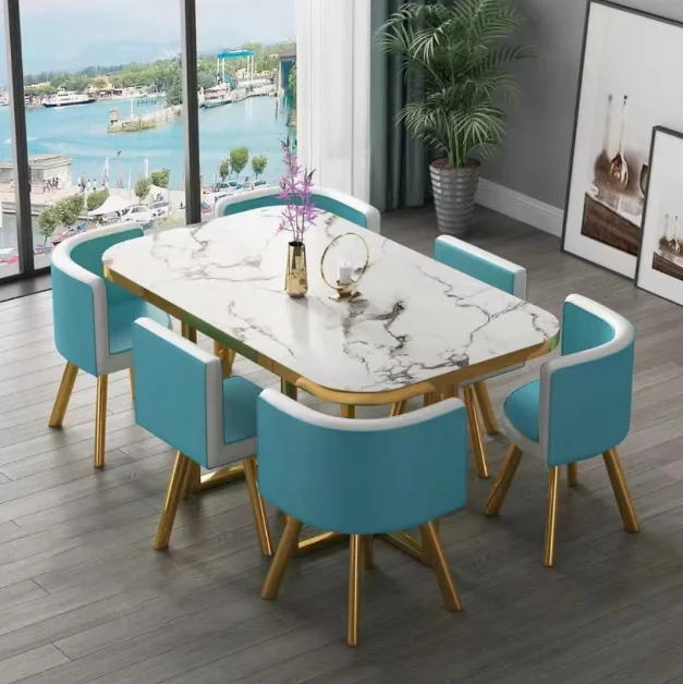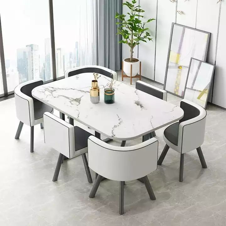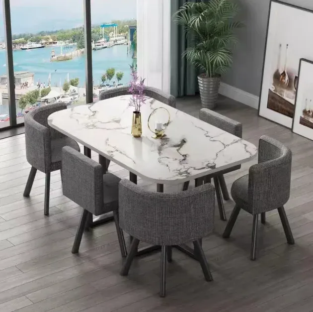 New Factory direct sale Modern Marble Top Dinning Table White Classic Dinning table Room Set With 6 Chairs